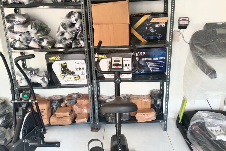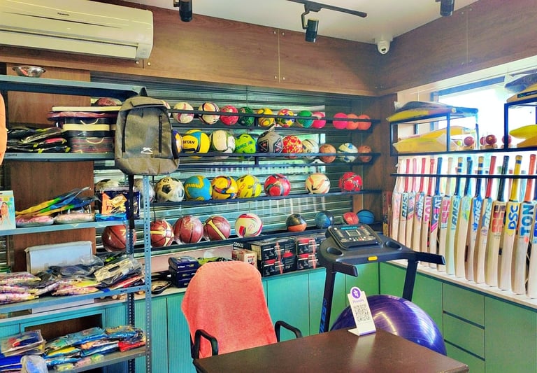 Shop by Sport & Fitness Cricket Gear-Bats,Balls,Gloves,Pads,Kits,Helmets Football & Volleyball,Balls,Nets,Jerseys,Studs Badminton & Tennis-Rackets,Shuttlecocks,Strings,Grips,Nets Gym & Fitness-Dumbbells,Benches,Resistance Bands,Yoga Mats Sportswear-Jerseys,Shorts,Lowers,Tracksuits,T-Shirts Footwear-Running Shoes,Spikes,Training Shoes